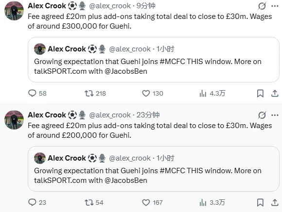 曼城在过去24小时内加强了对格伊的兴趣。天空体育新闻本周早些时候报道称,在这个转会窗口中,曼城似乎是唯一愿意与他达成协议的俱乐部。利物浦、拜仁慕尼黑和阿森纳等俱乐部都曾对在夏季免费签下格伊表示兴趣。这意味着曼城必须提出一个有吸引力的报价,才能让水晶宫和格伊愿意现在完成转会。